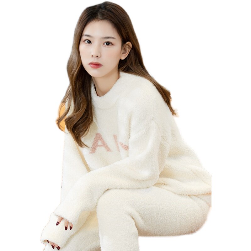 LY Babynico's new minimalist alphabet pyjamas women's autumn winter coral velvet cute wind to wear outside home clothes