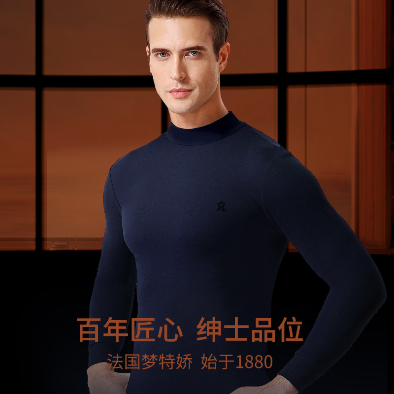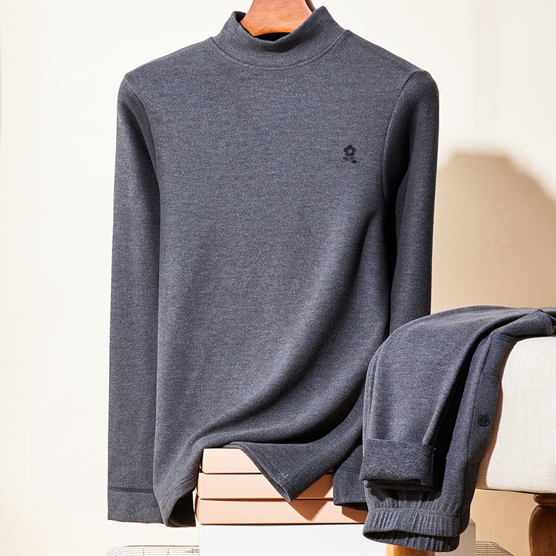 Montagut silk velvet half turtleneck heating jacket men's plus velvet cashmere mid-neck autumn clothes sanitary trousers suit winter