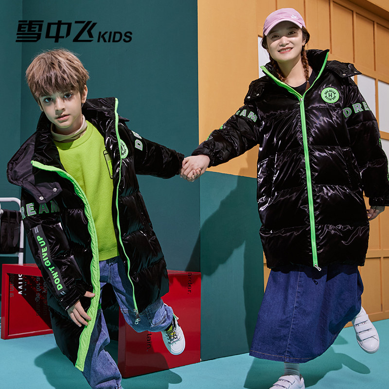 Snow flying kids parent-child down jacket boys middle-aged children's down jacket girls parent-child wear mid-length down jacket