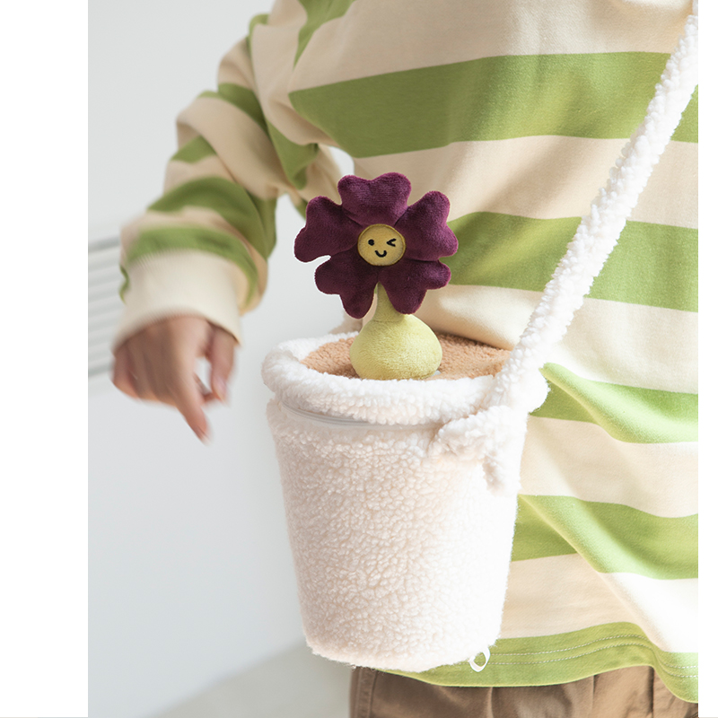 Ruosu good product autumn and winter new female plush cloth one-shoulder Messenger bucket backpack cute niche original design all-match