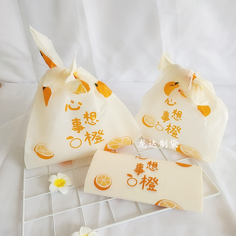 Thinking Matter Orange Back Heart Bag Baked Sweet Takeaway Packaged Fruit Snacks Plastic Bag Commercial Hand Bag Disposable