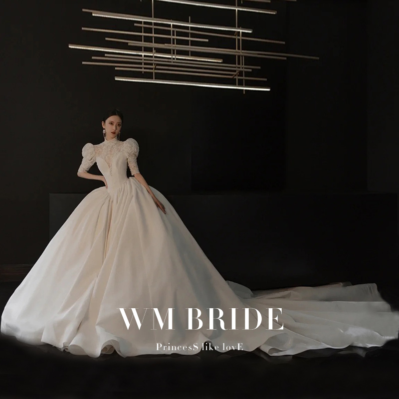Wedding dress 2022 new bride main yarn satin high-quality texture temperament welcome yarn light luxury high-definition big tail heavy industry