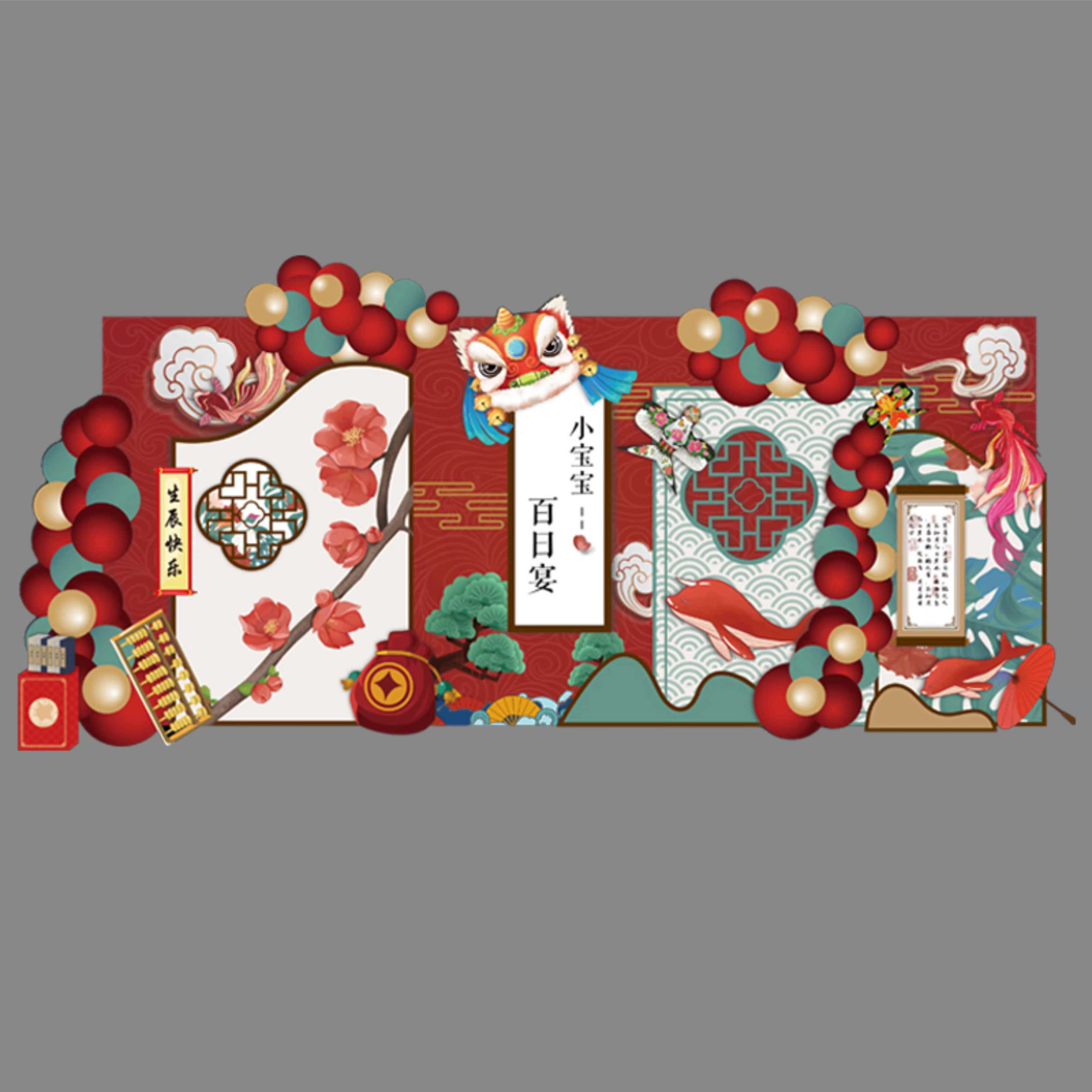 KT background board customization Catch Zhou Li one-year-old hundred-day party birthday background net red Chinese style party layout