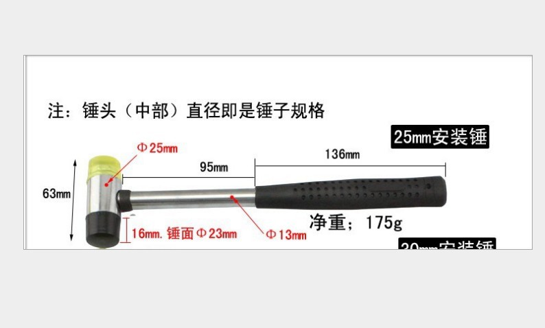 Steel tube handle rubber hammer leather hammer nylon hammer double - head rubber small hammer DIY handicraft knocking tool