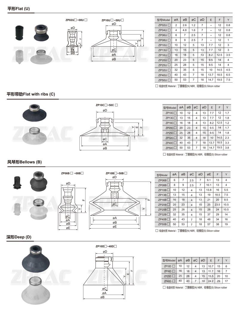 Vacuum suction cup ZP10CS ZP10CS ZP13CS ZP13CS ZP20CN ZP25CS ZP25CS ZP32CN ZP40C ZP40C ZP40C ZP40C