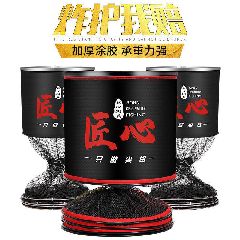 New thickened card edge double-circle stainless steel black pit competitive fast fish dry protection anti-hanging glued folding fish cage fishing net pocket