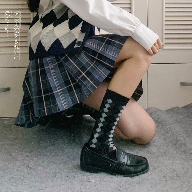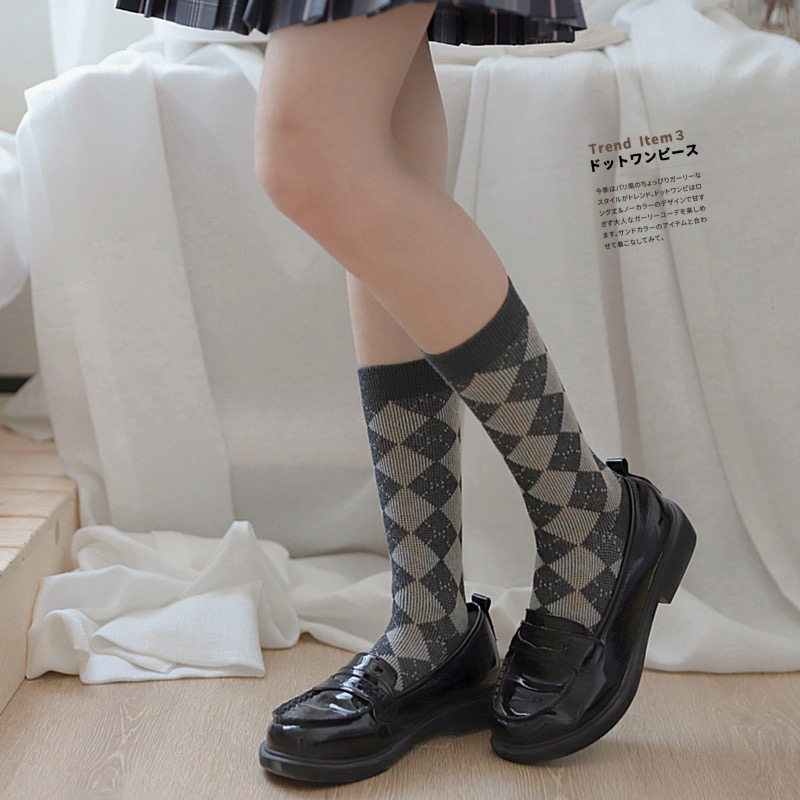 Japanese spring and autumn Lingge cotton mid-tube socks British retro calf socks beautiful legs thin students all-match JK girl