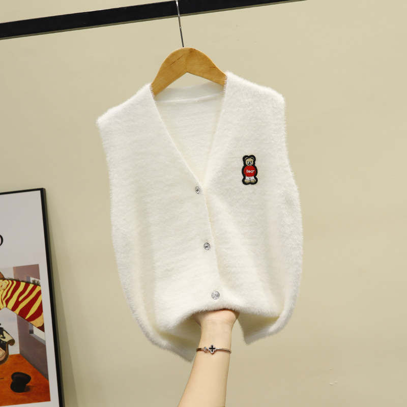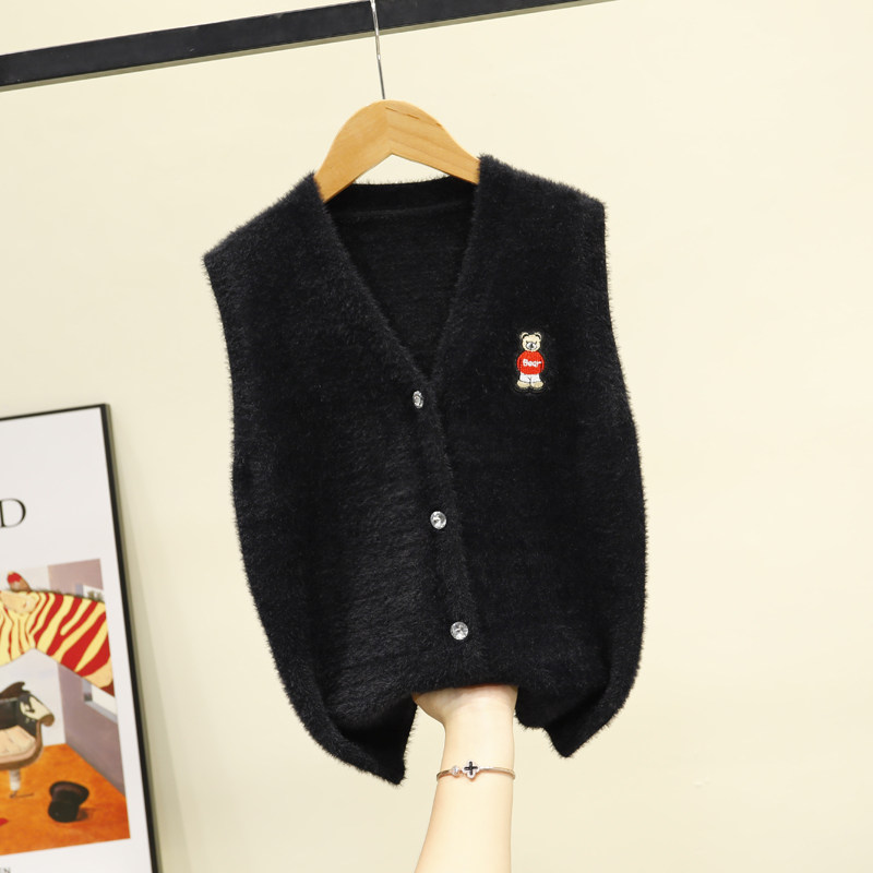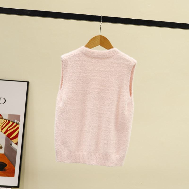 Girl's sweater vest 2022 autumn and winter children knitting vest sweater in large children's mink - fluff baby's shoulder