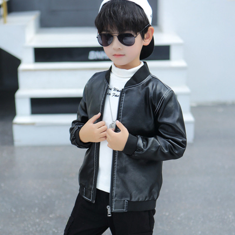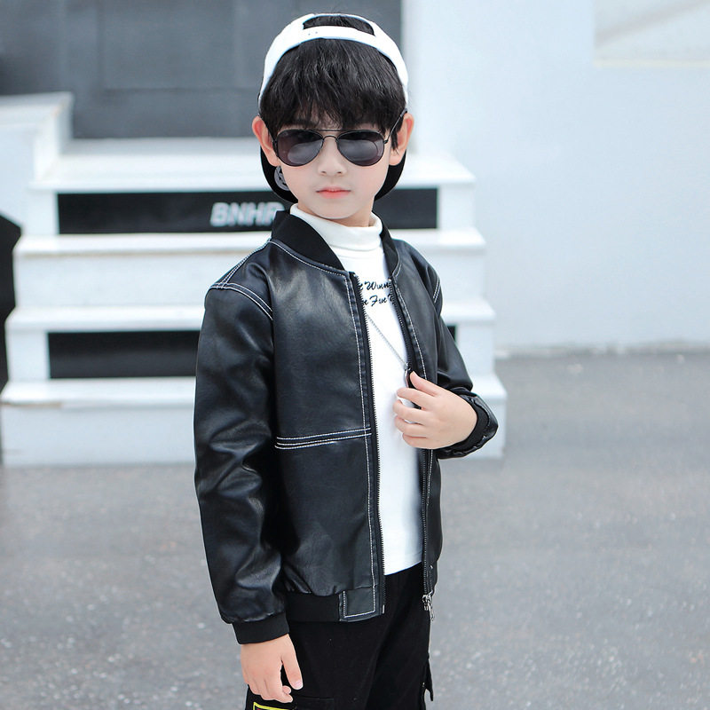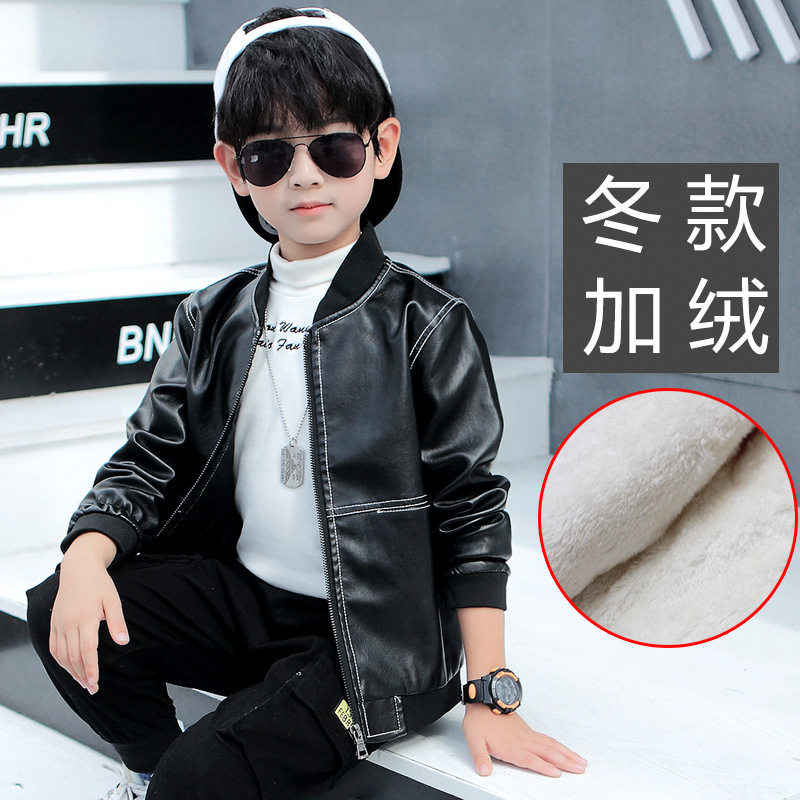 Korean boy leather motorcycle jacket 2021 autumn and winter new children's casual jacket in the big boy handsome plus velvet tide