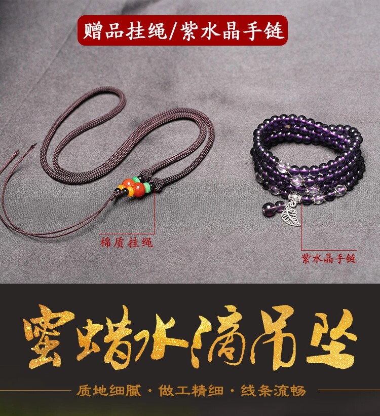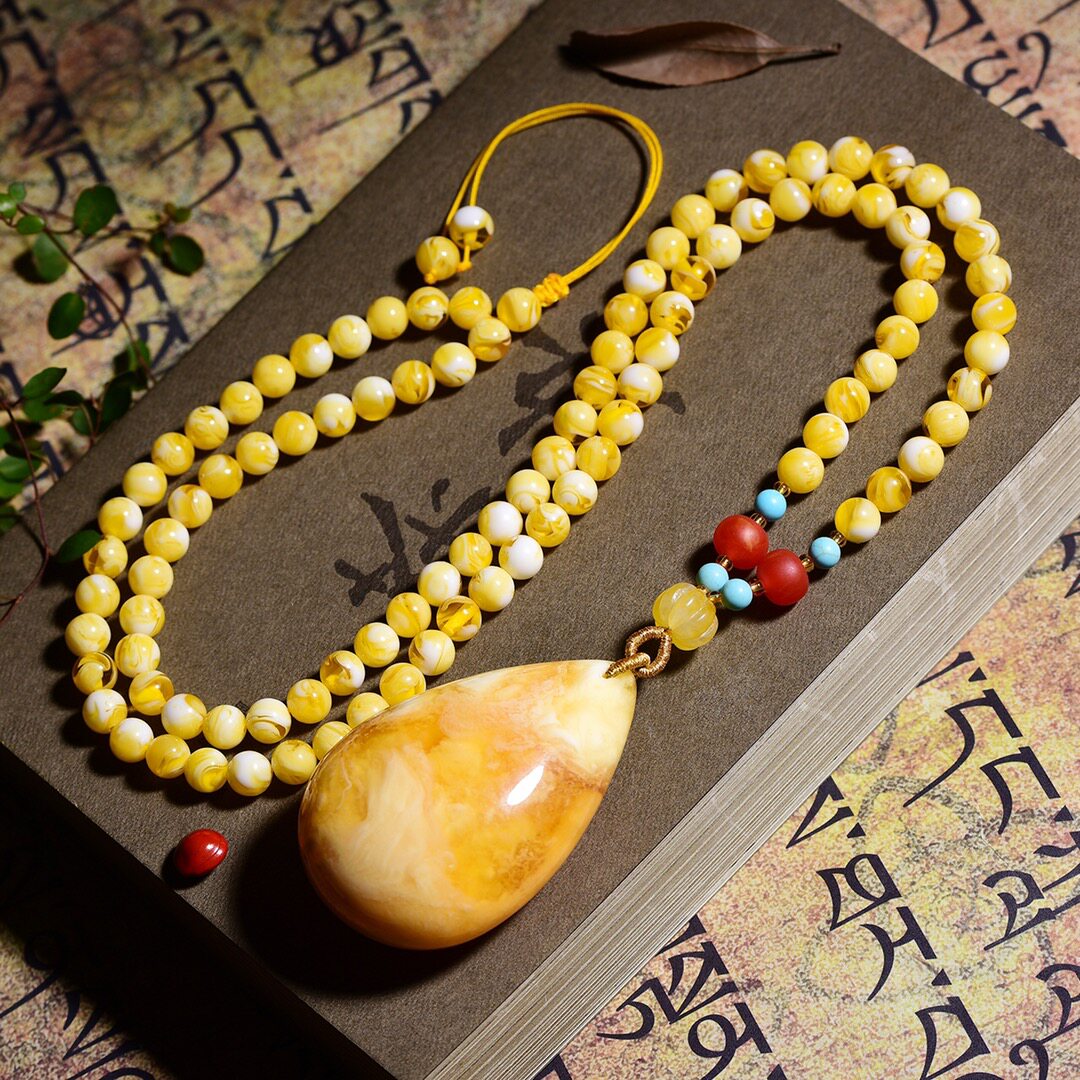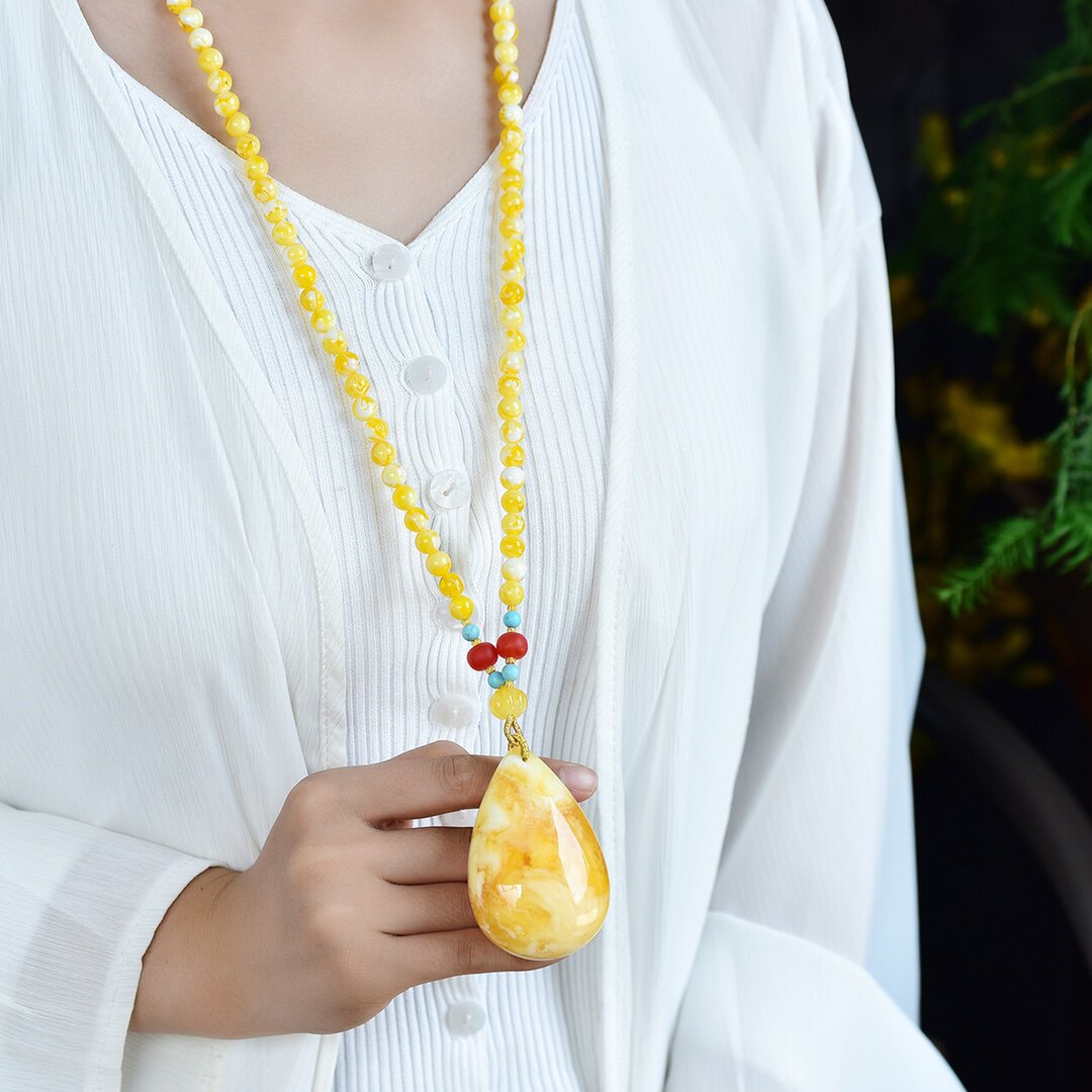 White necklace, white honey, old honey wax water drop sweater chain female natural amber old honey necklace hanging