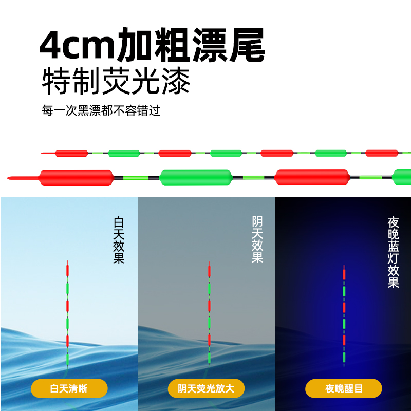 Wanderly lead-free self-supporting drift and coarse floating tail big black pit nano-float double explosion-proof super eye-catching fluorescent fish drift