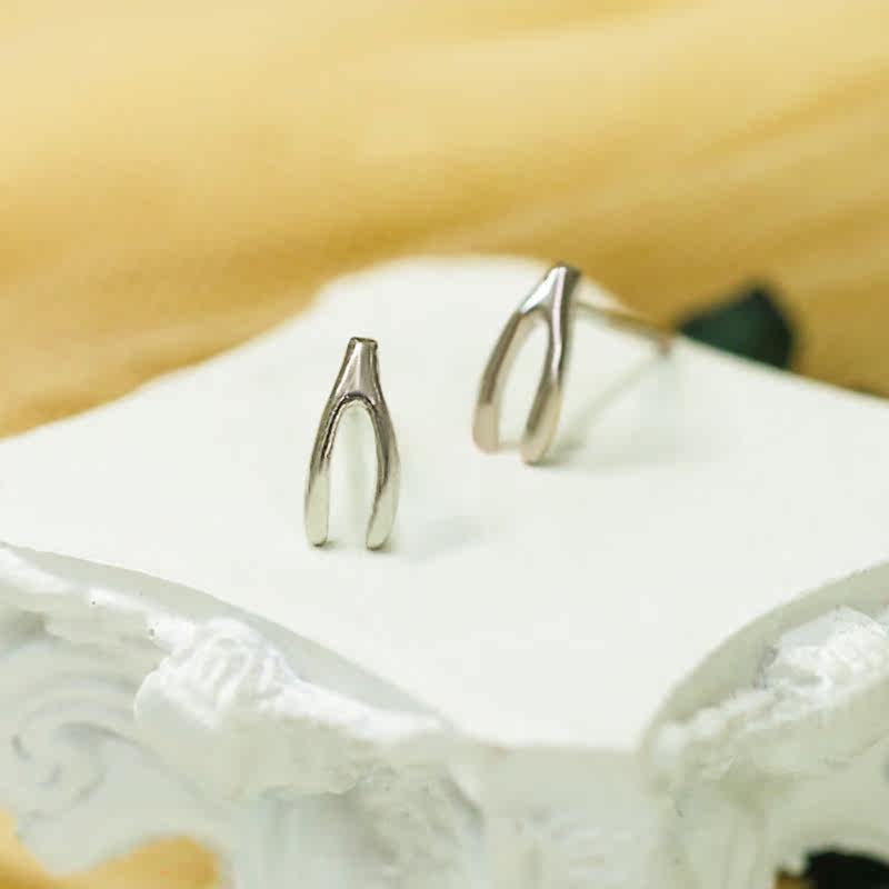 Japan-ROK s925 pure silver letters V-word ear pin cute temperament fork bone earring earring pendant silver ornament female style