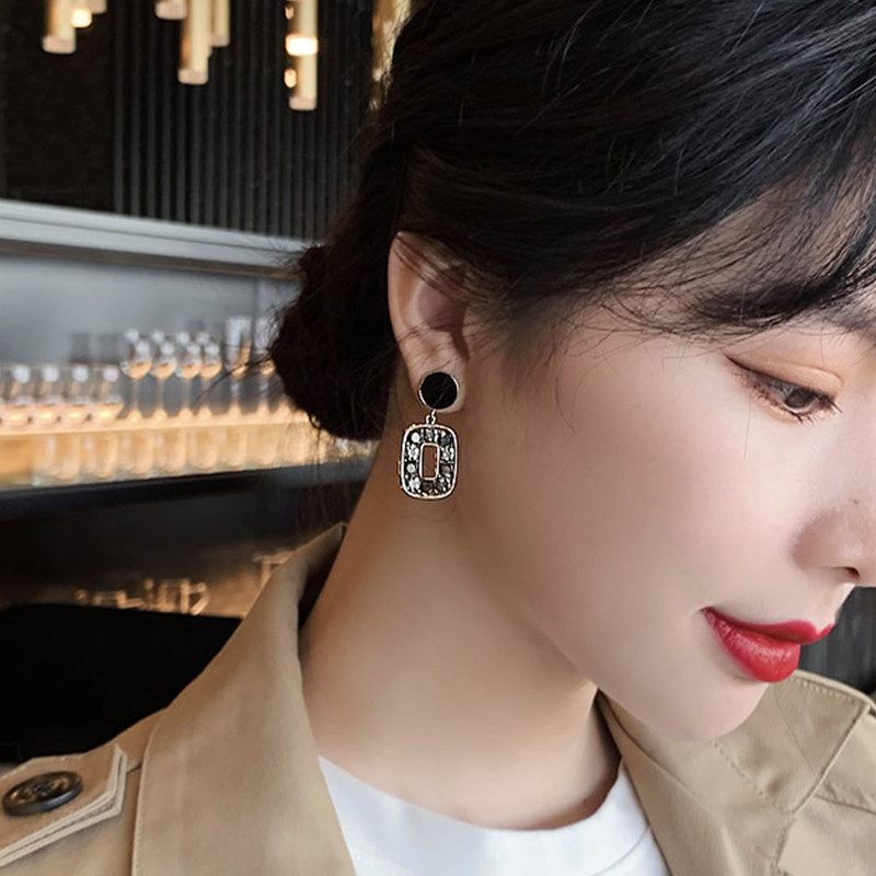 Hong Kong style retro sterling silver earrings women's light luxury niche high-end Korean small ck temperament earrings 2021 new trend