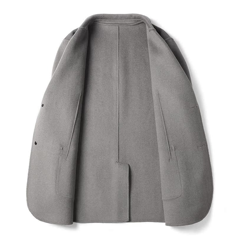 Autumn Money Wool Pure Color Small Suit Men Short Han version Repaired Double Face, Suit Collar Cashless Suede Jacket