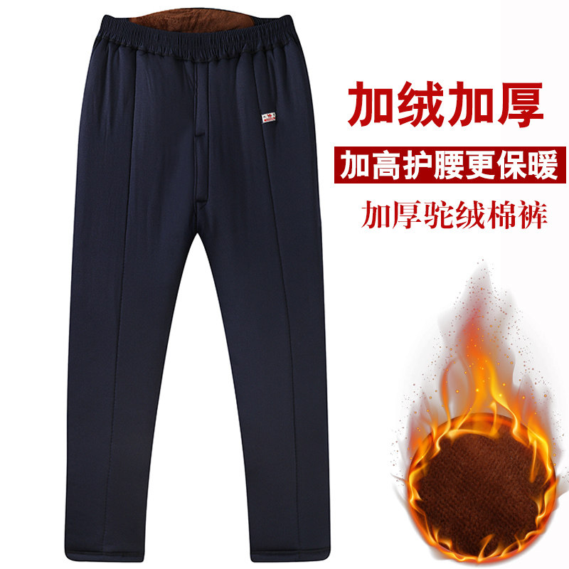 Elderly Thickened Camel Cotton Pants Men's Autumn Winter Middle Aged High Waist Loose Plus Suede Dad Grandpa Anti-Chill Warm Pants