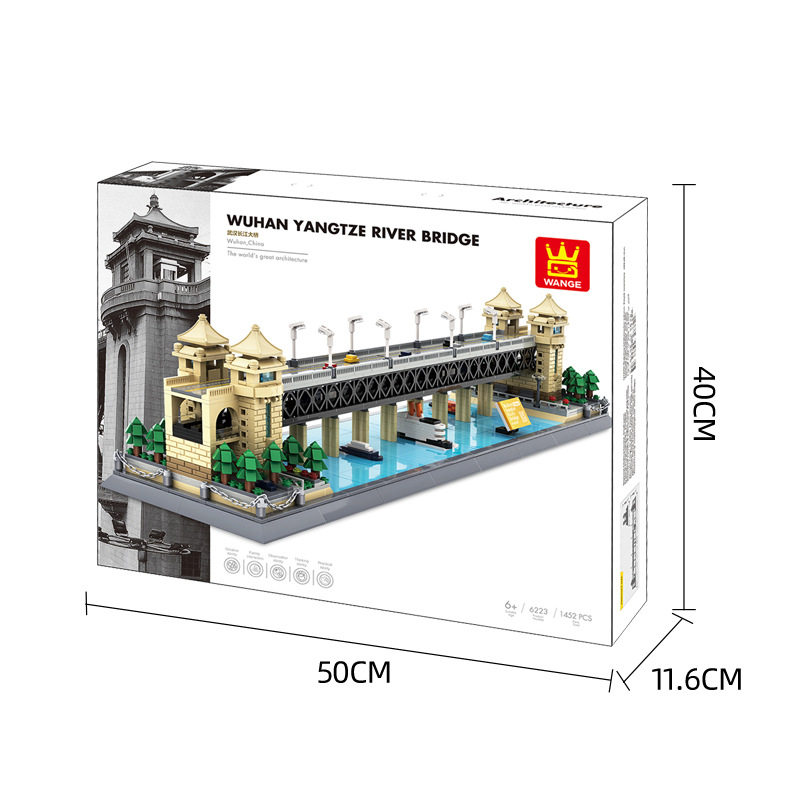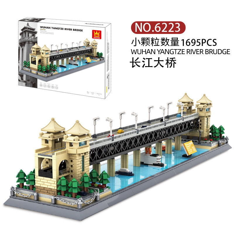 ten thousand G 6223 China Wuhan Yangtze River Bridge Adult Assembled City Building Small Grain Building Block Toy Model