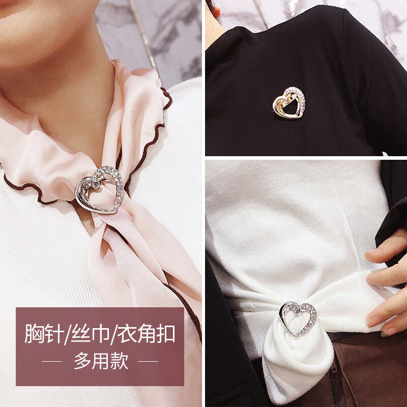 Silk scarf buttoned corner T-shirt clothes hem knotted buckle brooch high-end waist pin artifact decorative accessories female