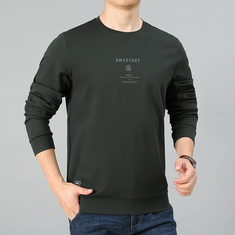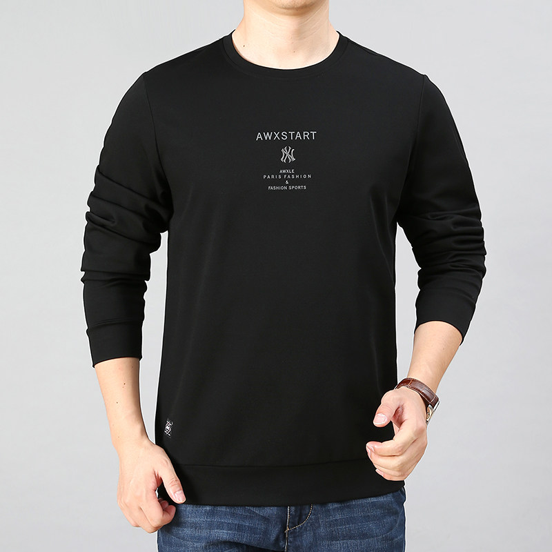 Autumn fitted clothes T-shirt male long sleeve T-shirt loose middle-aged inner round neckline for leisure large size clothing for men's spring and autumn