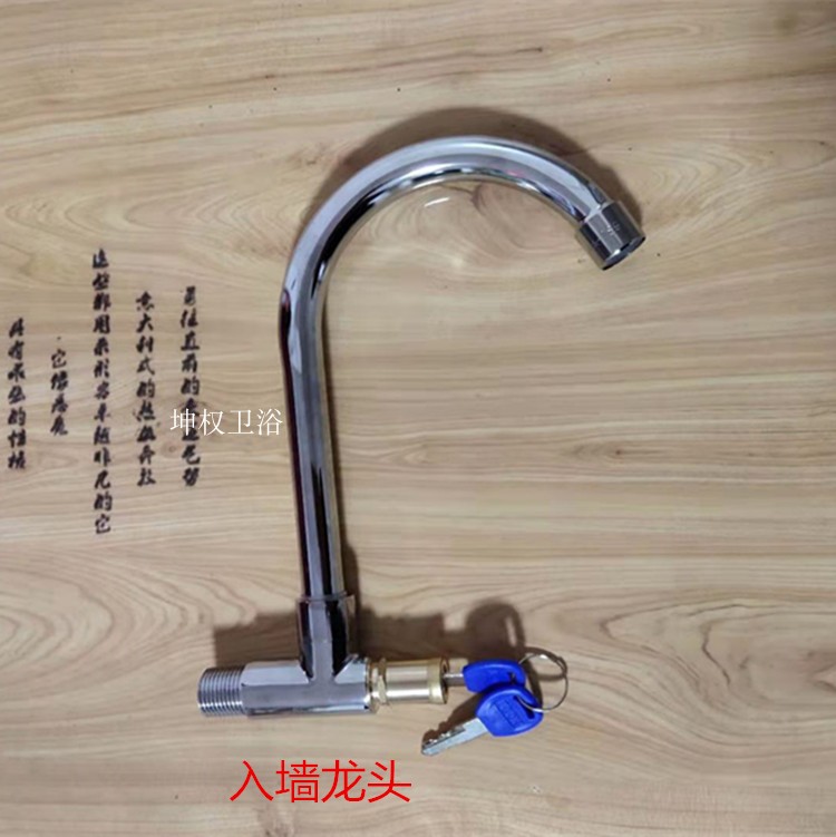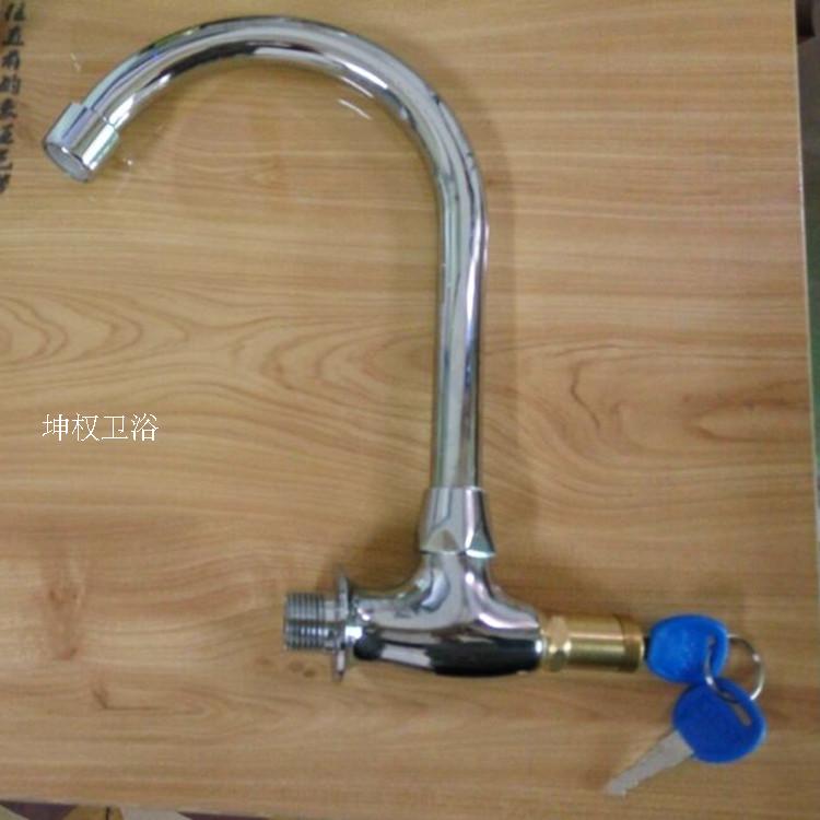 Into the wall single cold kitchen faucet with lock basin with key wash basin wash basin sink laundry pool copper faucet