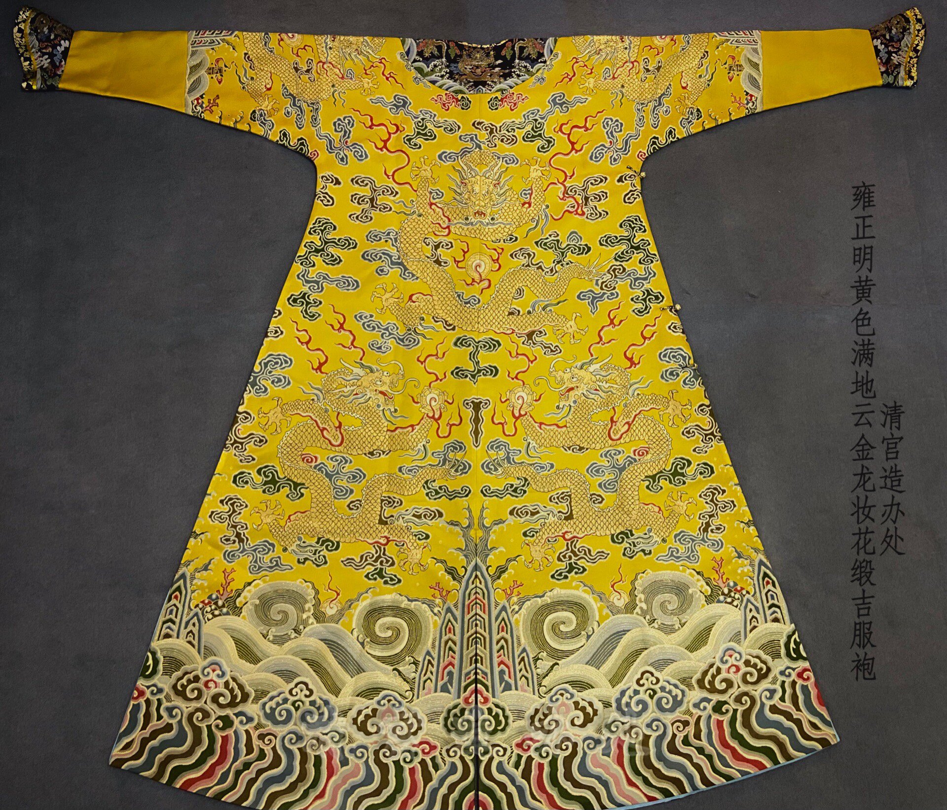 Qingyong Zheng Ming Bright Yellow Full Clouds Golden Dragon Makeup Flowers Satin Qigui Gown and Qing Palace Mint Office Undertaking