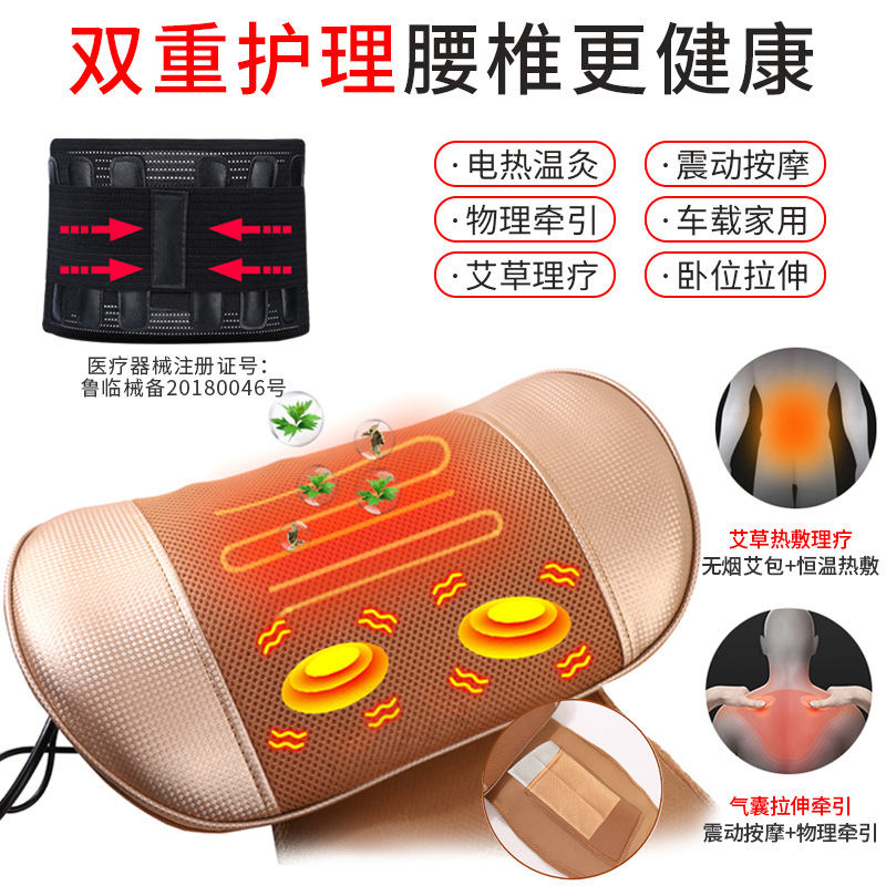 Massage Pillow Qu Degrees Lumbar Airbag Magnet Hot Compress Shake On-board Home Lumbar Massage Instrument Waist Massager