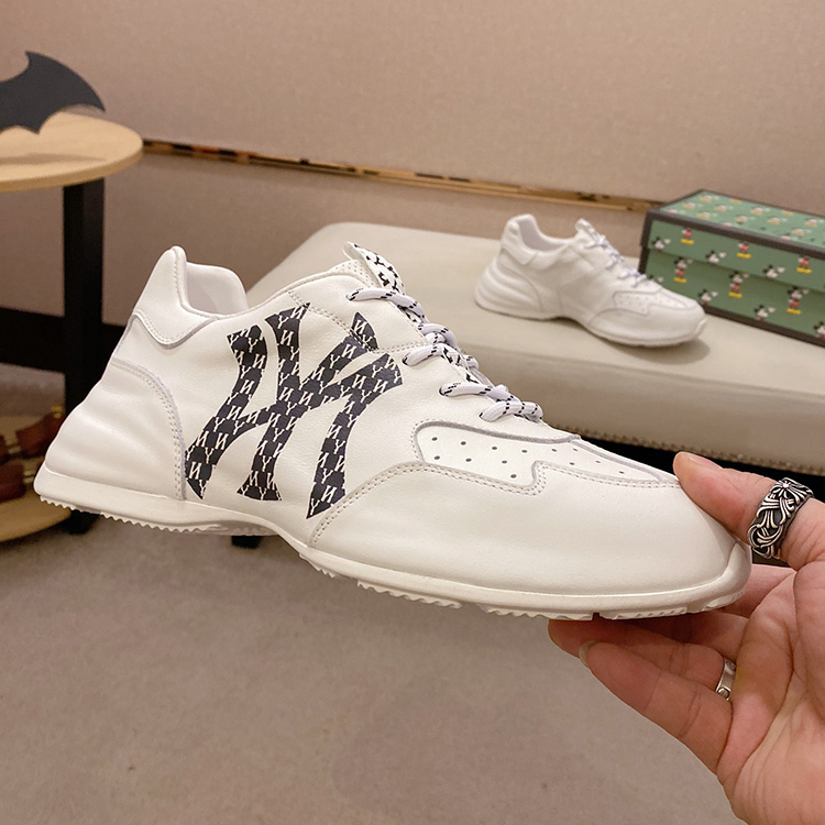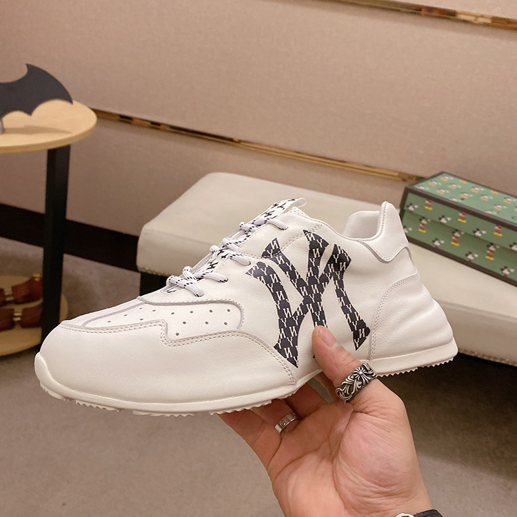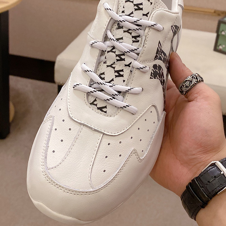 Bonjani leather European station men's shoes men's sneakers daddy shoes cowhide trendy brand British thick-soled printed white shoes