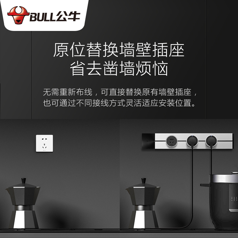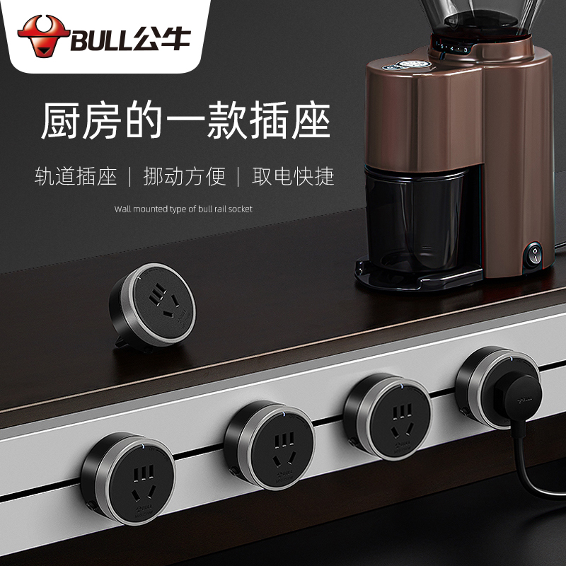 Bull Power Socket Home Wall Fixed Removable Power Rail Plug-in Board Wall-mounted Slide Rail Shifter Embedded Rail Multi-Position Kitchen Living-room Bedroom Special Plugging Platoon Plug