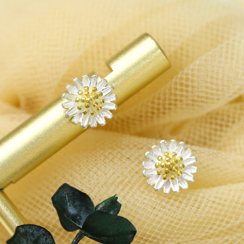 Japan-ROK s925 pure silver small daisy ear pin sweet and gold small flower earrings earring earbone nail silver decorated female style