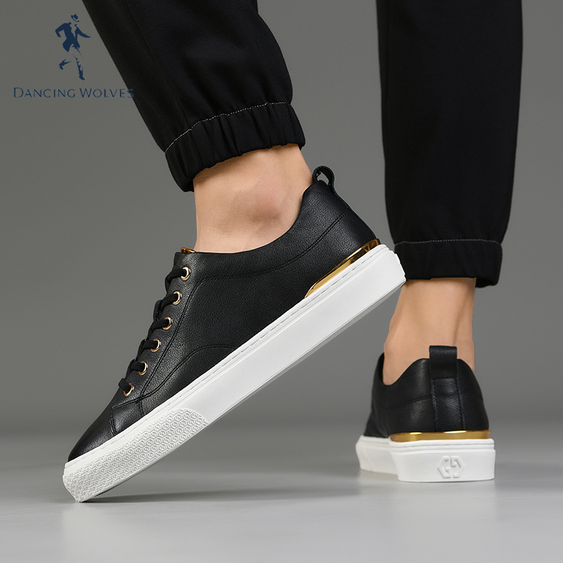 Dancing with Wolves Men's Shoes Summer Brand Men's Casual Leather Shoes Men's Leather Low Top Black Summer Sneakers