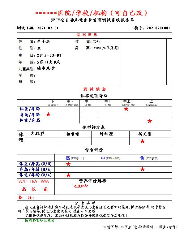 Child Growth and Development Scale Child Growth and Development Test System Input Data Directly Print Results