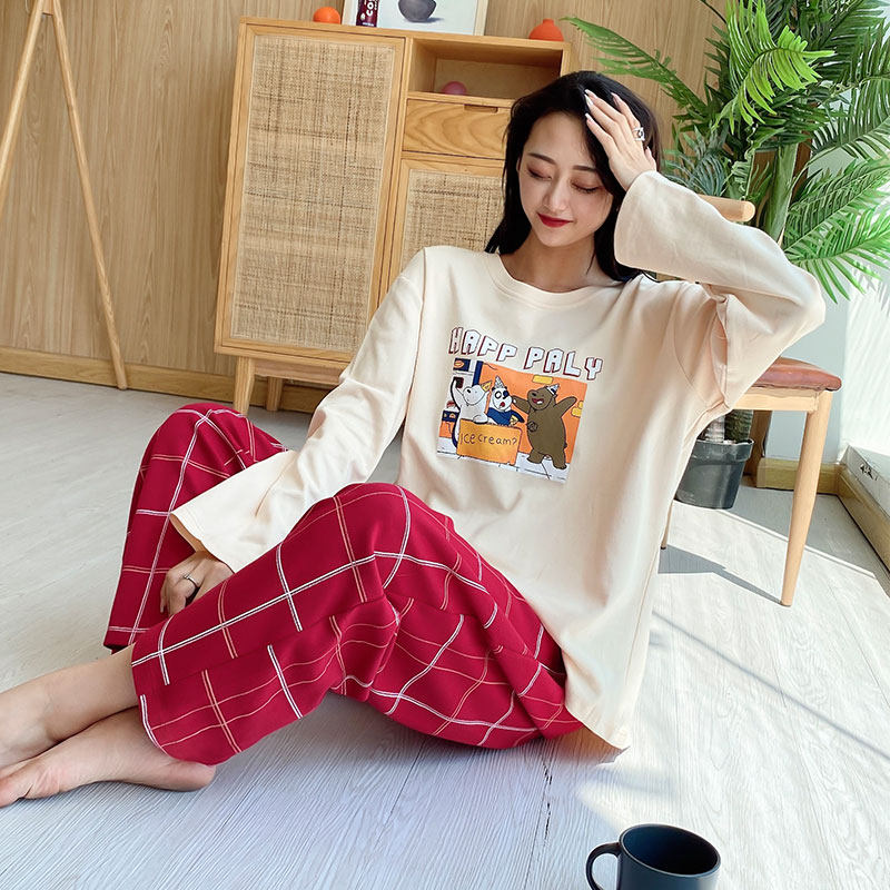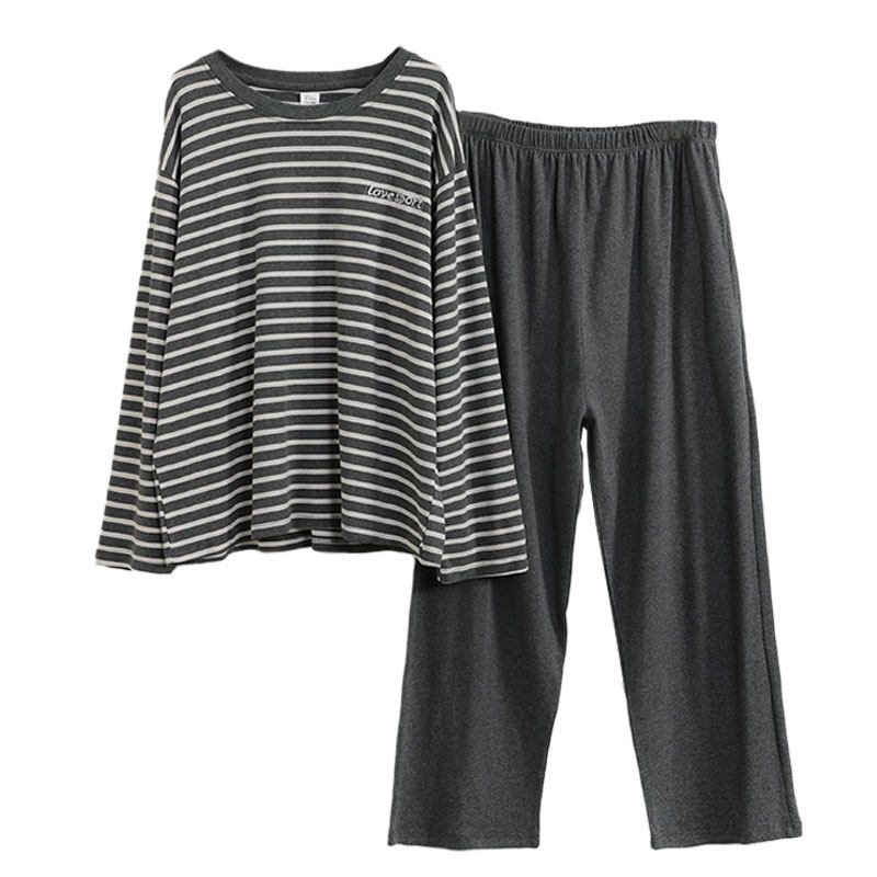 Fat sister pajamas spring and autumn pure cotton loose large size stripes long sleeve trousers set up 200 pounds for cotton household clothes