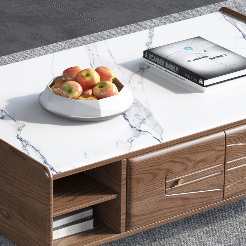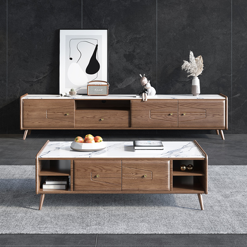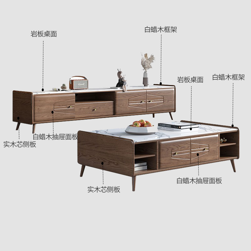 All solid wood ash wood rock slab tea table TV cabinet combination modern minimalist living room Nordic light luxury small apartment floor cabinet