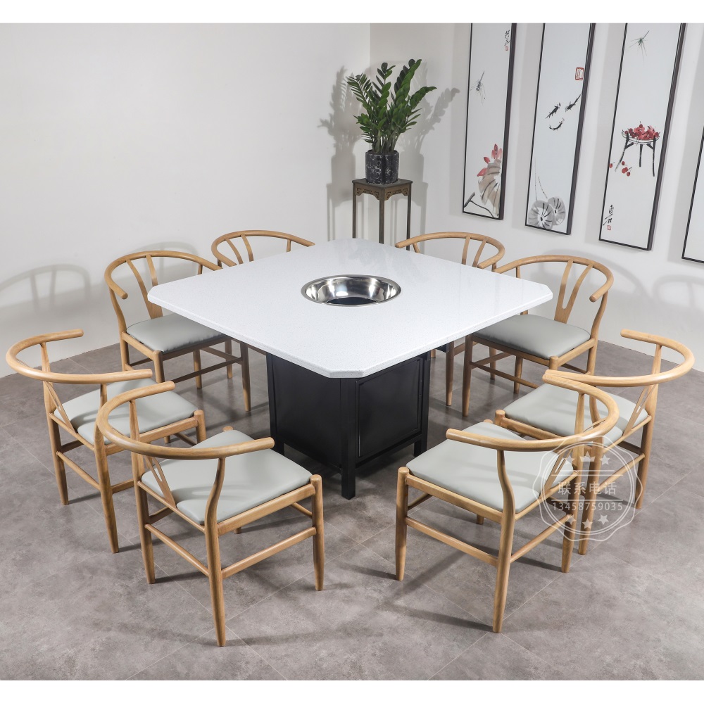 Simple square full marble hot pot table table and chair combination hot pot restaurant string incense spicy hot leisure farm hotel commercial