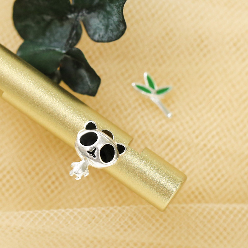 s925 Sterling Silver Giant Panda Bamboo Ear Pins Sweet and Cute Asymmetrical Earrings Earrings Ear Bone Nails Silver Jewelry Women
