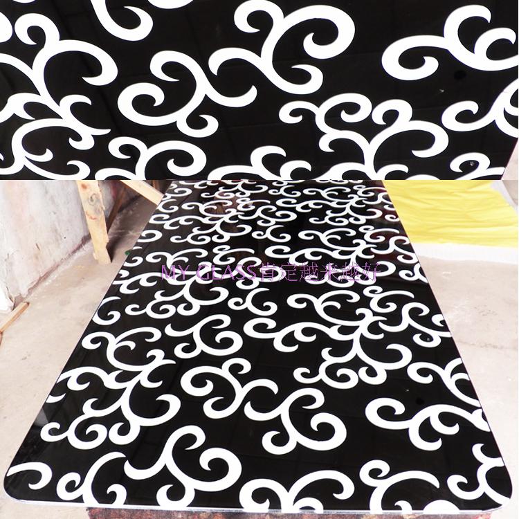 Custom manufacturer back paint paint paint tempered art glass living room desktop 7 font separate splice white black solid