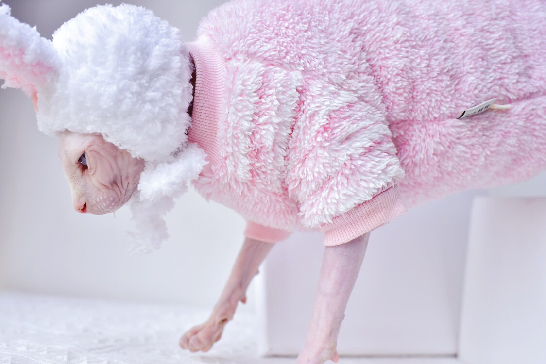 YH-rare mountain white suede soft cotton bifacial suede winter warm thickened YonWo Sfinks No fur cat clothes German