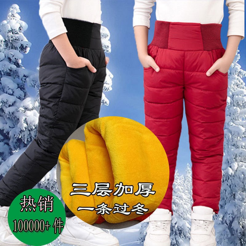 New products ex-gratia winter male and female children's pants large three layers thickened trousers children pants high waist down cotton cotton trousers