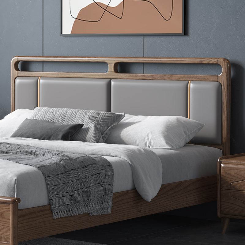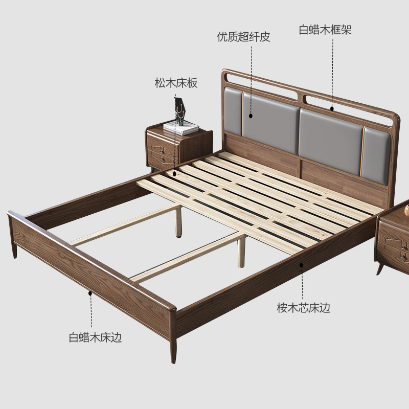 All solid wood bed modern minimalist 18 meters soft package wedding bed ash wood walnut color double bed Nordic master bedroom furniture