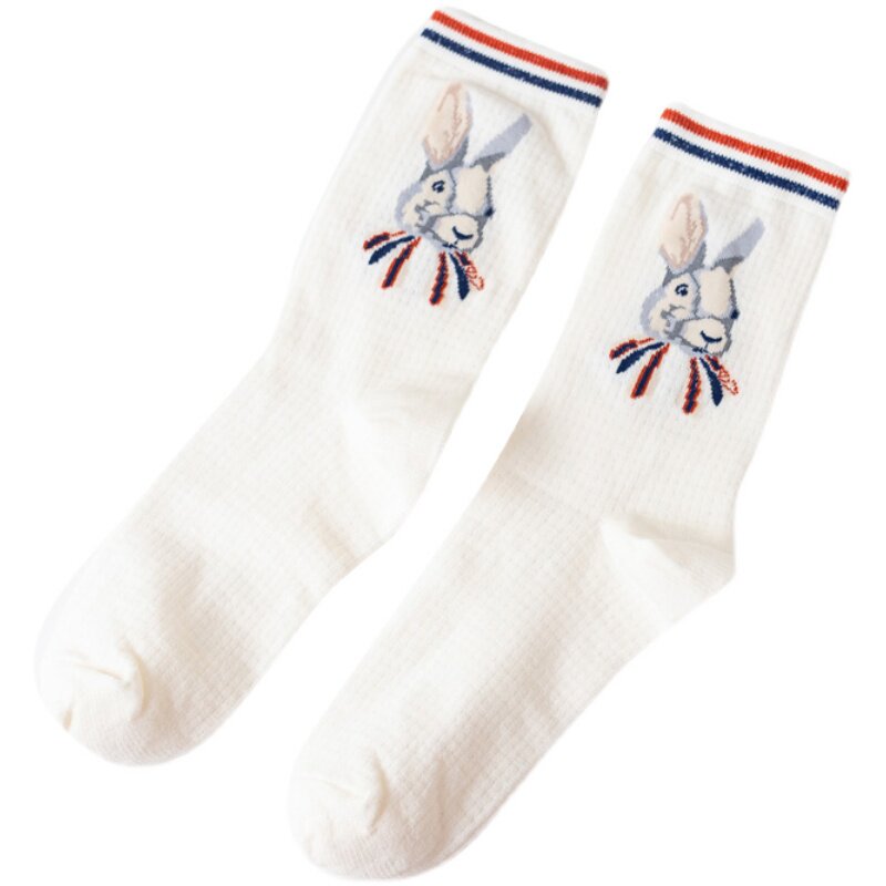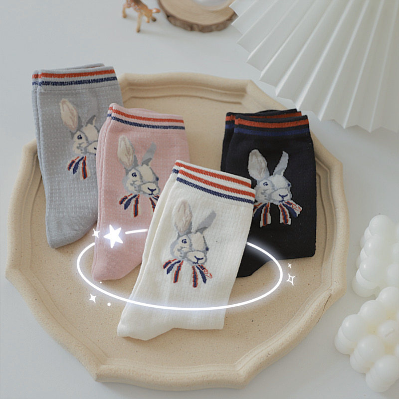 Cartoon Rabbit Spring Fall Day Series 100 Hitch Street Retro Midbarrel Socks Children Pure Cotton Socks Cute Ins