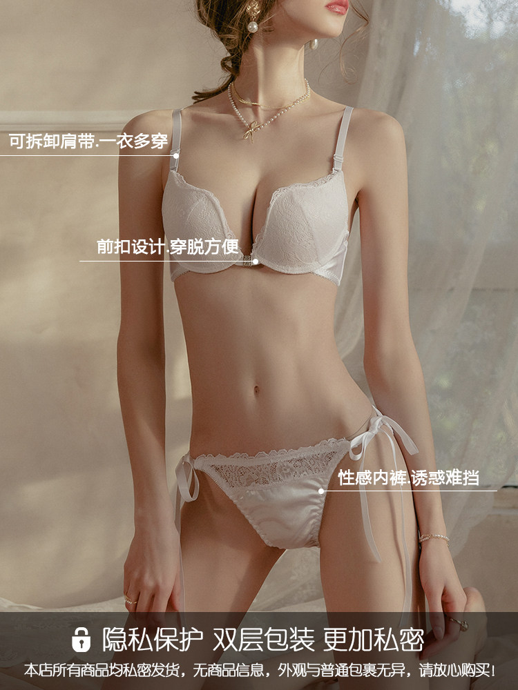 White Faith Lace Sexy Underwear Woman Small Chest Gathering Anti Drooping Beauty Back Pure Desire Wind Front Button Bra Hood Suit