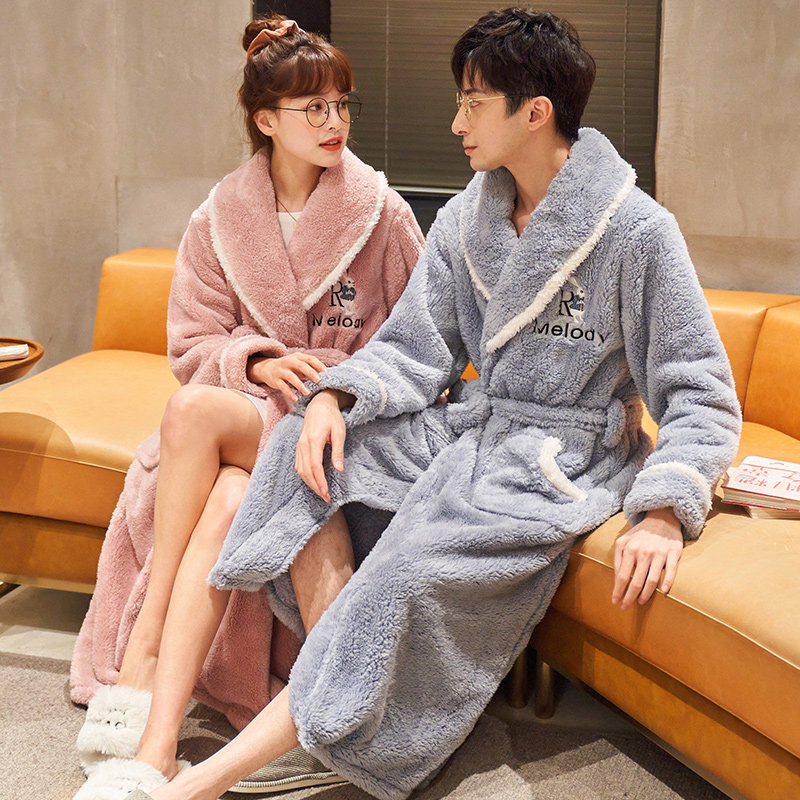 Sleeping Robes Women's Winter Thickening Long Version Coral Suede Lovers Bathrobes Men's Autumn Winter Easy to enlarge Yard Flannel Pyjamas