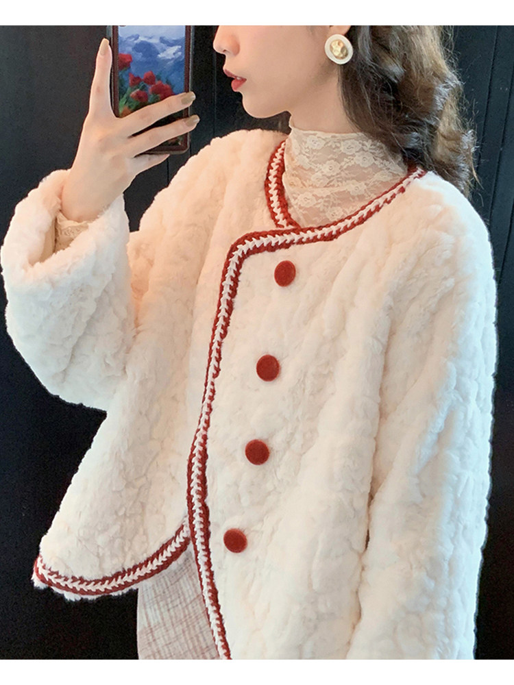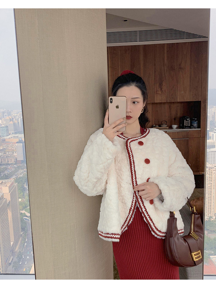 2021 autumn and winter new lamb velvety fur coat short imitation rabbit fur small balsamic fashion with slim plush great coat