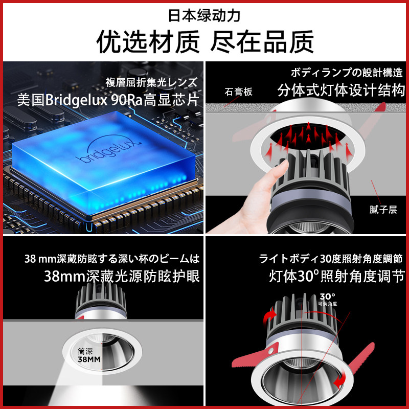 Green power cob spotlight embedded narrow edge deep anti-glare ceiling light spotlight wall washer LED downlight living room home