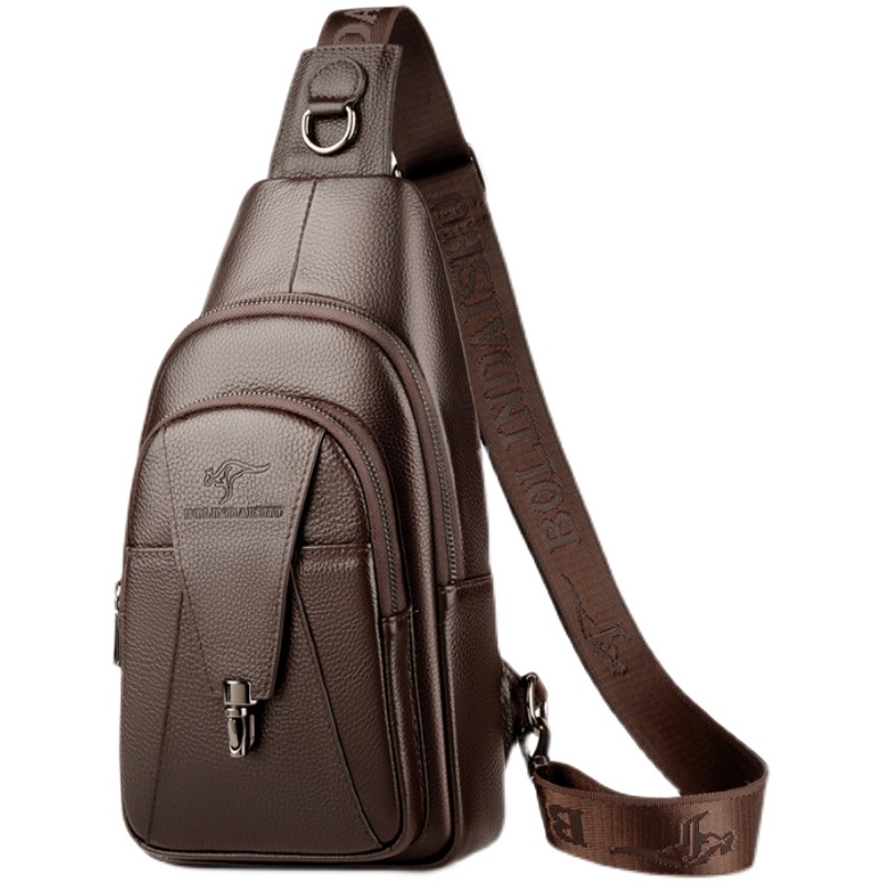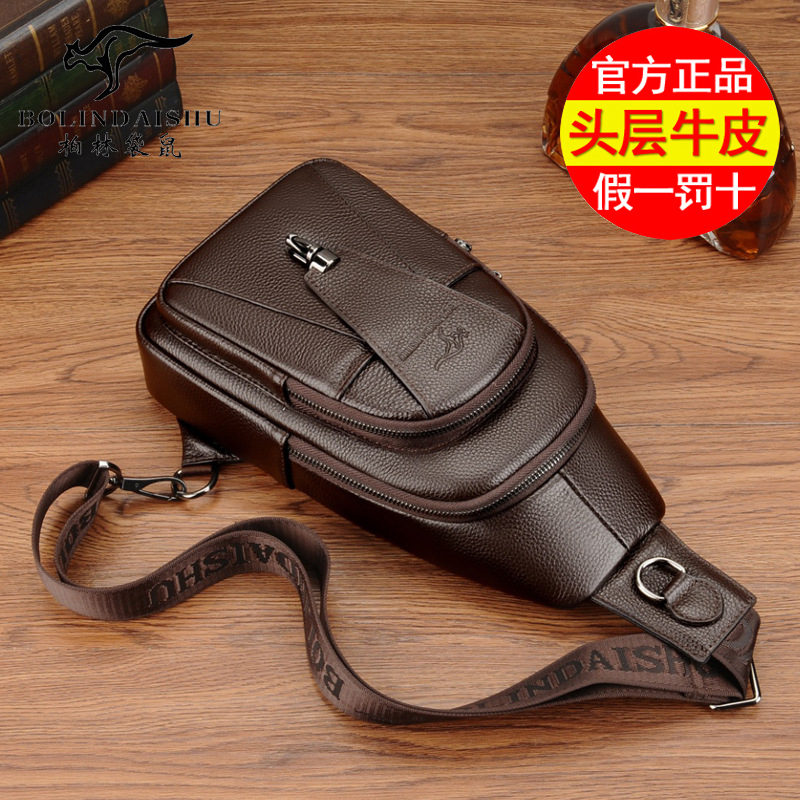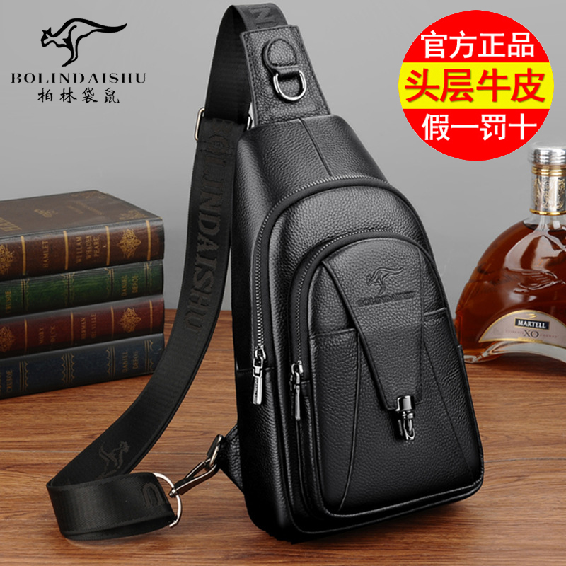 Berlin kangaroo chest bag men's 2022 new sports backpack men's soil bag leather messenger head layer cowhide slanting shoulder bag