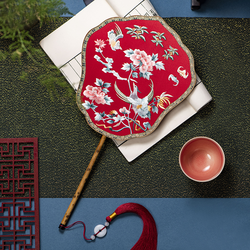 Screen Moon Group Fan Wedding Bride Gufeng Su Embroidered Embroidery Show And Wedding Fan Chinese Wedding High-end Hanfu Fan
