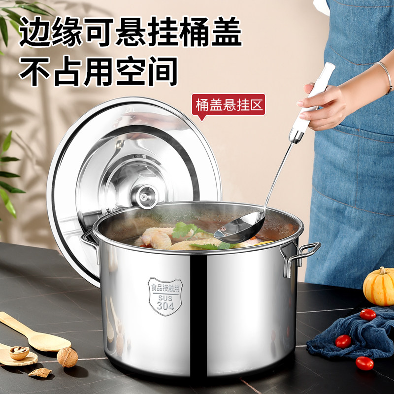 Stainless steel soup pot 304 food grade thickened household commercial kitchen supplies Daquan pan bucket multifunctional