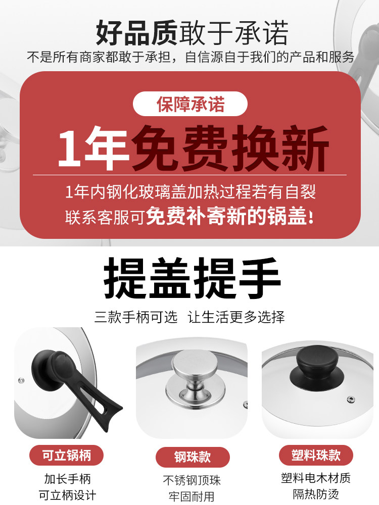 Stainless steel pot cover 304 food grade wok cover household high arch high temperature resistant thickened pan visible single cover