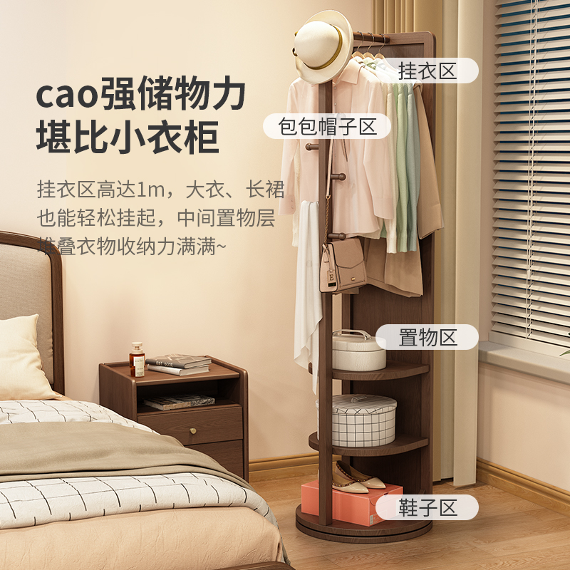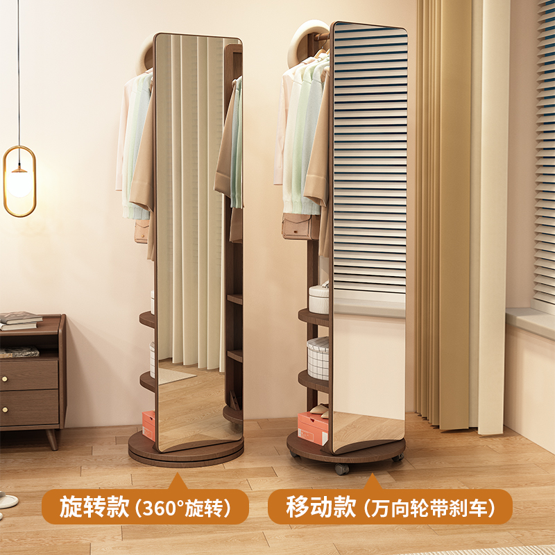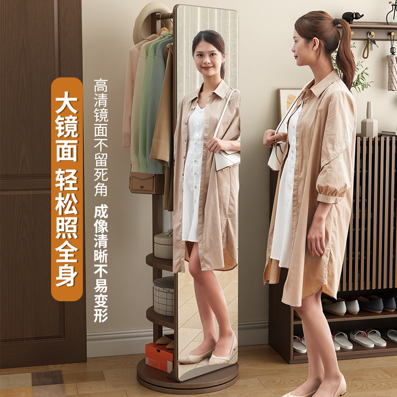 Solid Wood Whole-body Mirror Floor Mirror Home Bedroom Rotatable mobile fitting mirror with hanging clothes hanger integrated wearing mirror-Taobao