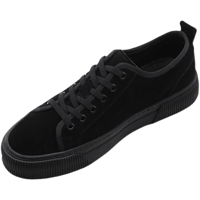 2022 Spring and Autumn New Thick-soled Men's Shoes Fashion Suede Black Casual Small Sneakers Genuine Leather All-Match Casual Shoes