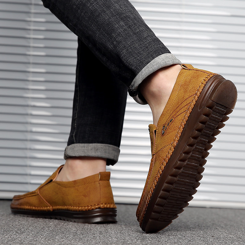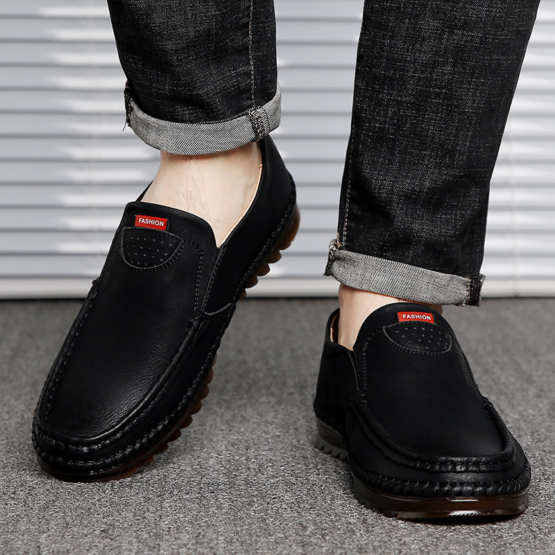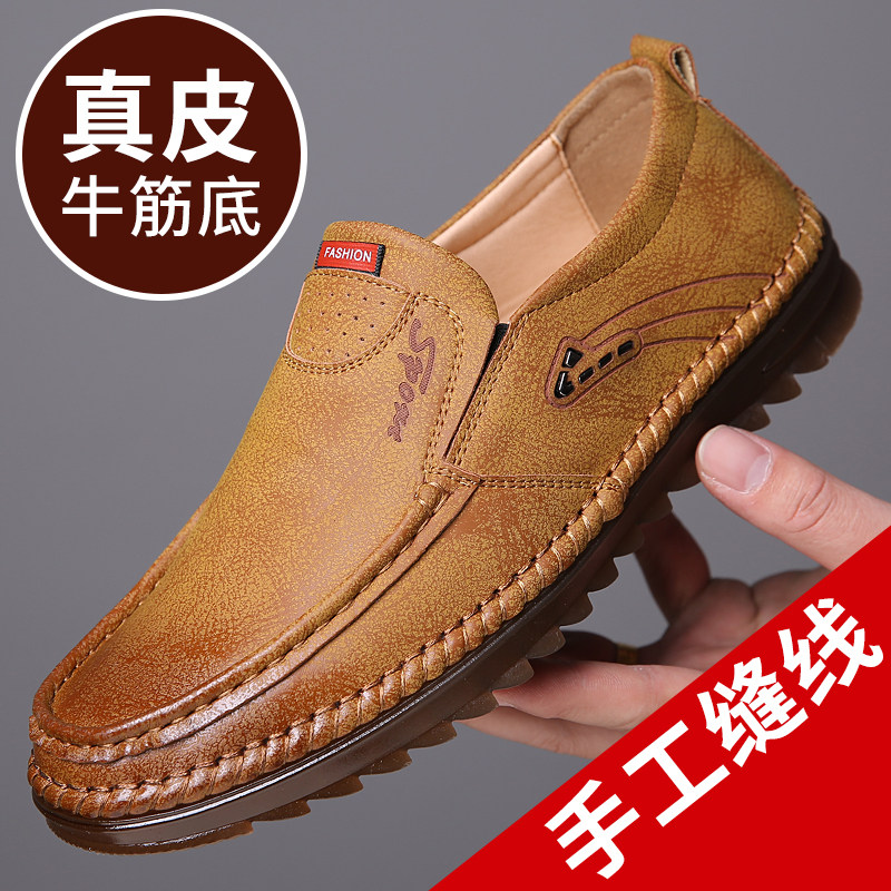 Leather shoes men's genuine leather 2021 autumn new men's casual shoes breathable Korean version soft bottom set feet lazy beanie shoes